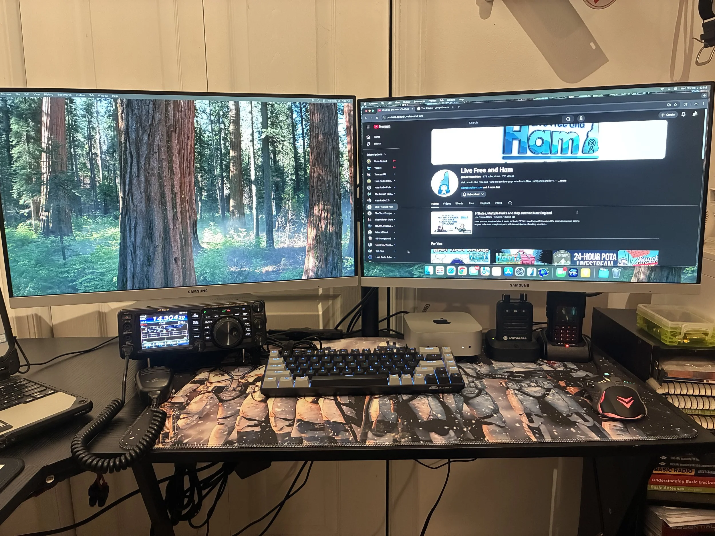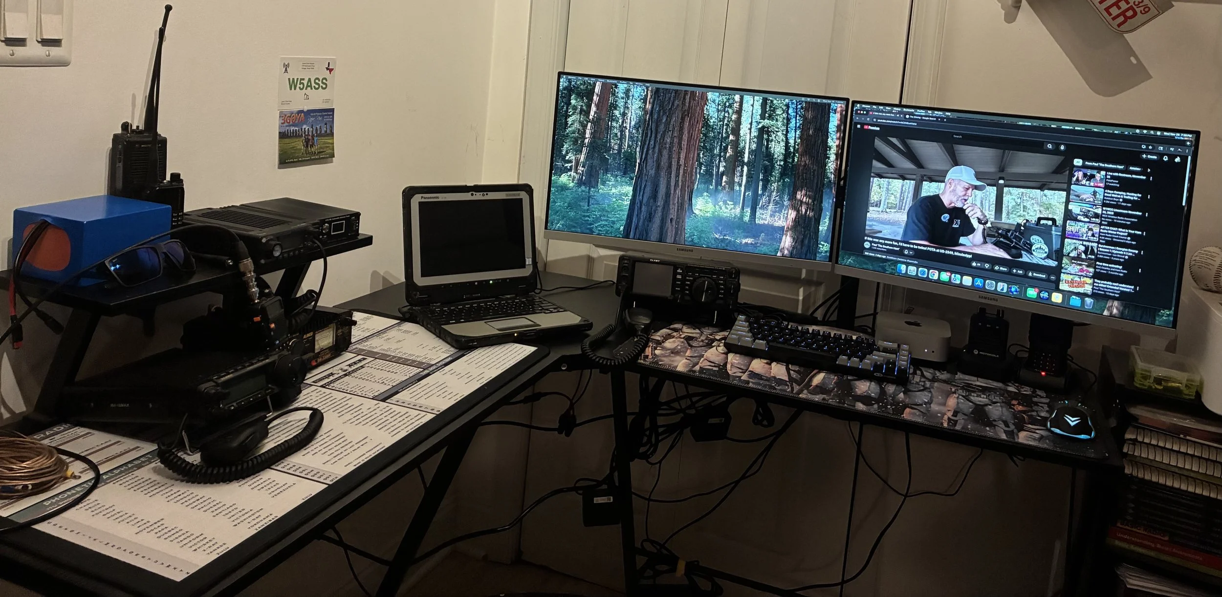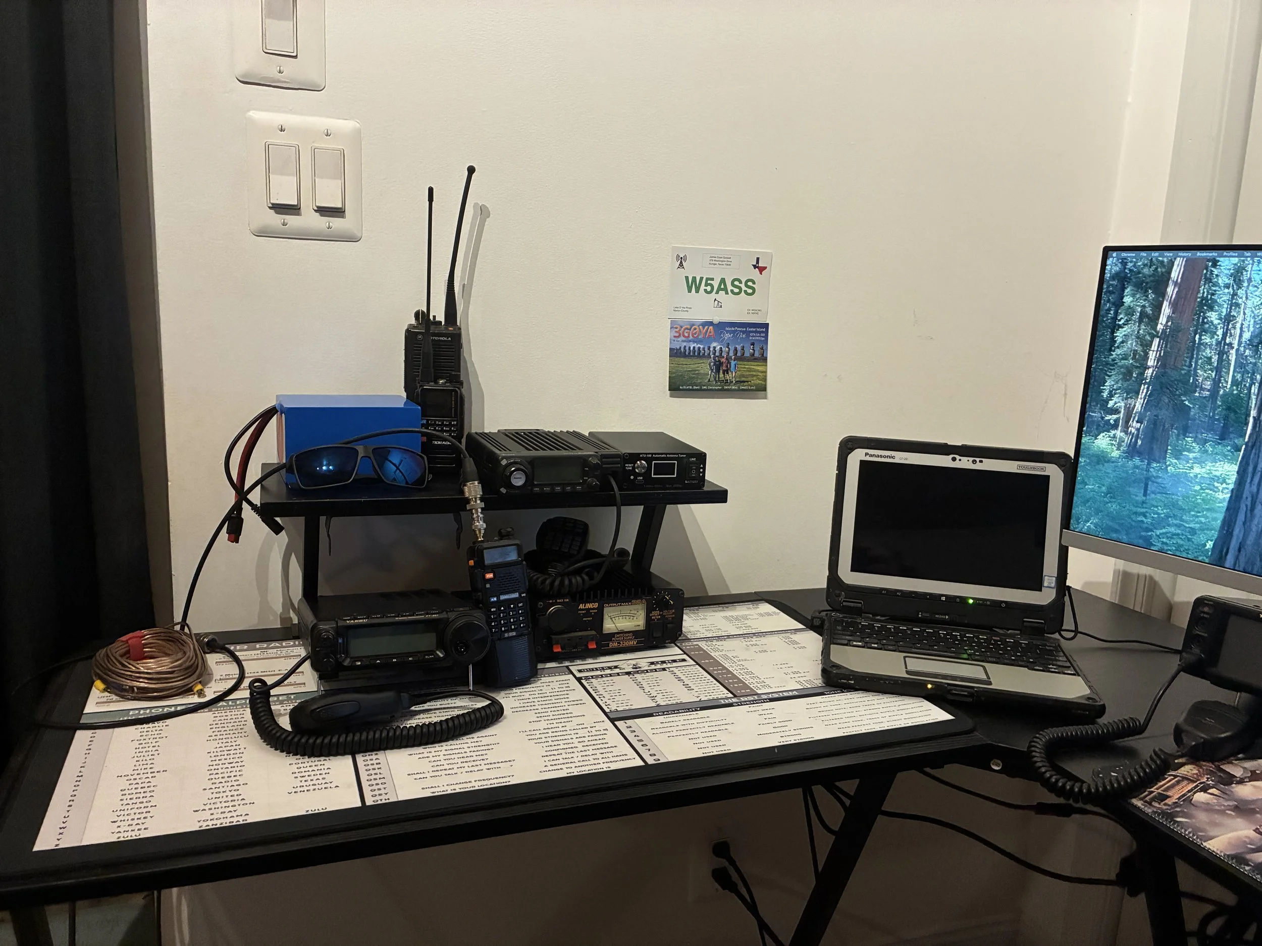 This is the “Rabbit Hole” or my corner of the house. I run a Yaesu FT-991a as a base station for HF and an IC-208H for VHF/UHF.